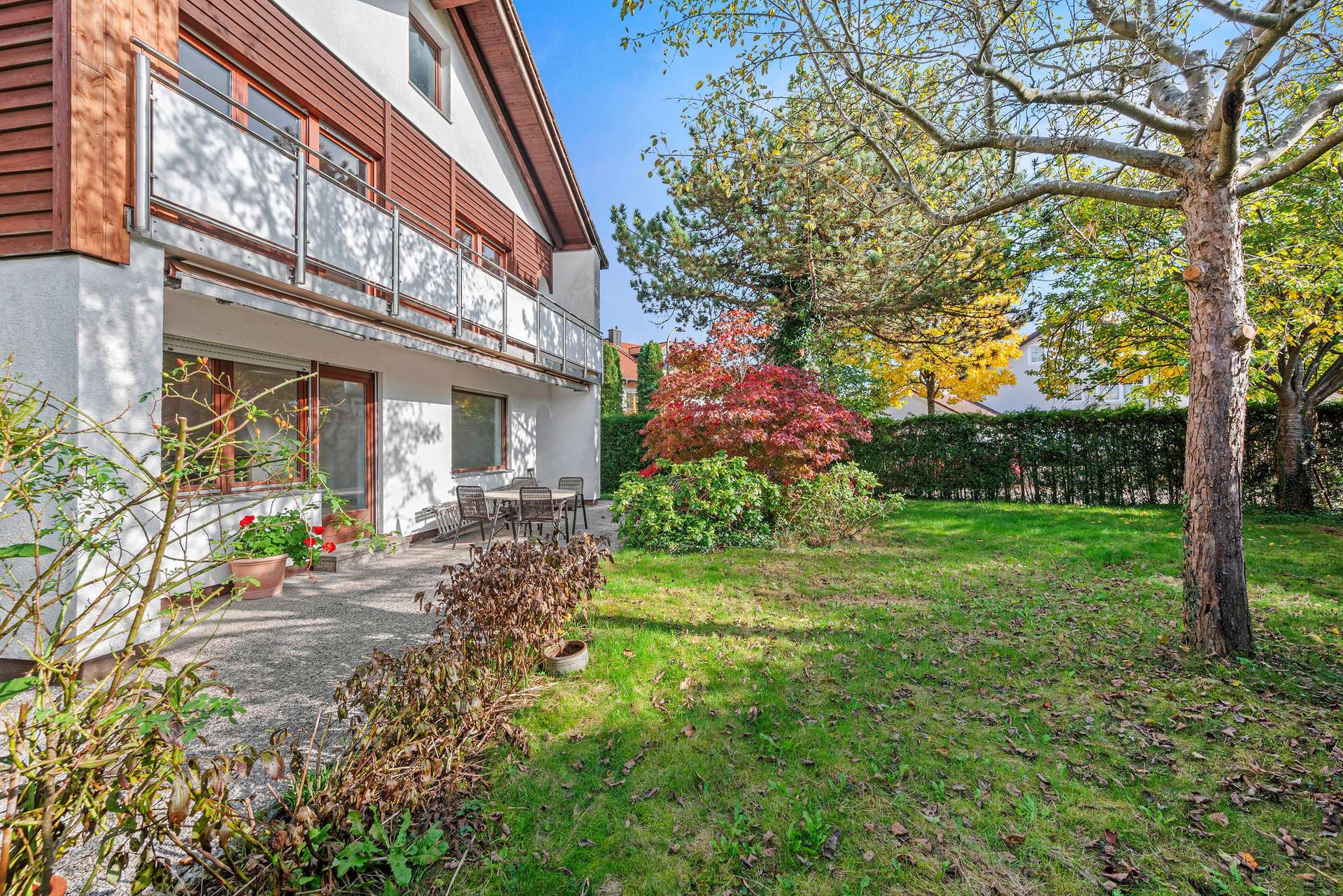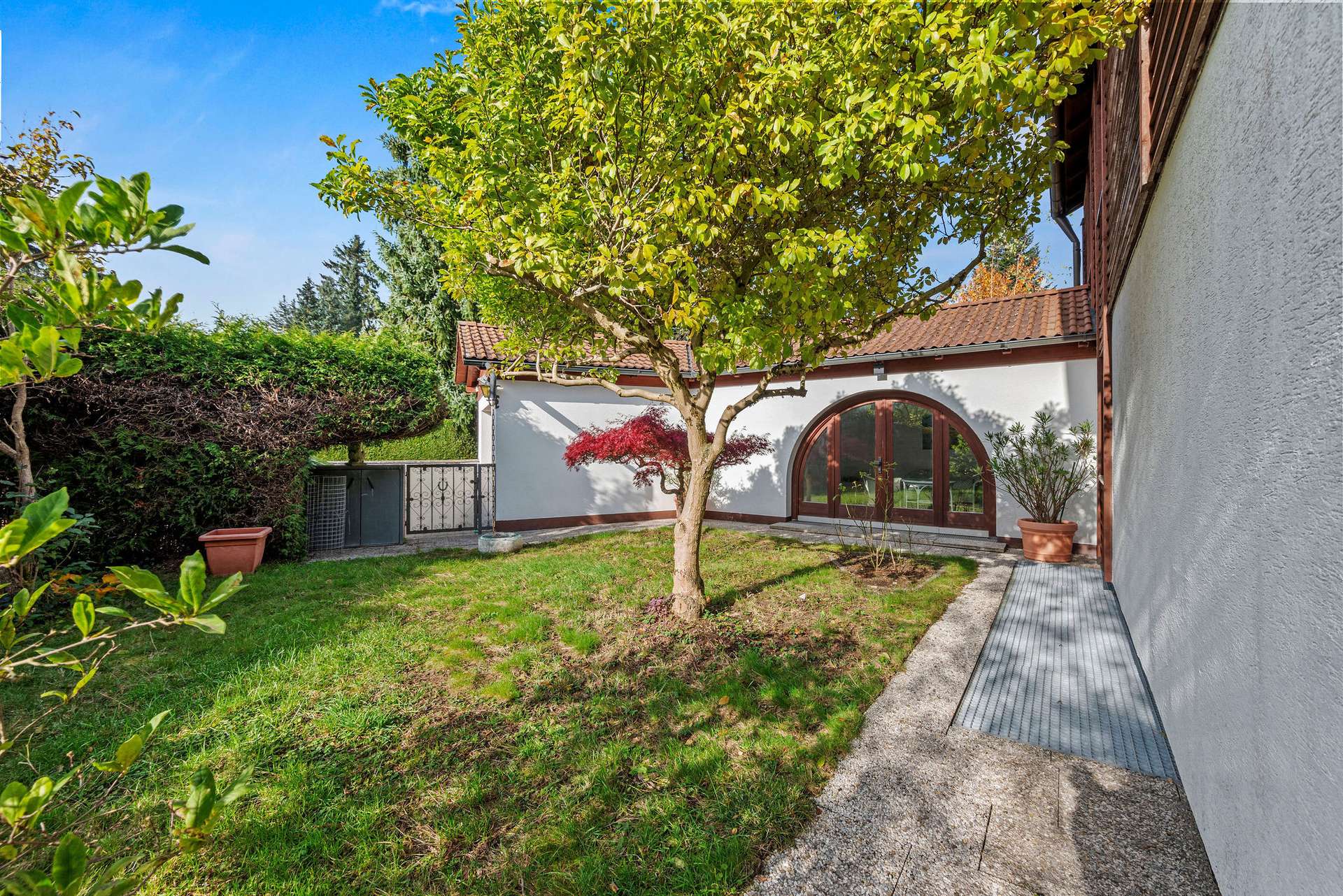 Auch der Außenbereich ist ein echtes Highlight: Der absolut ruhige, uneinsehbare Garten mit altem Baumbestand und Wasserspiel schafft eine Oase der Erholung. Auf der großzügigen Südterrasse genießen Sie sonnige Stunden im Freien.