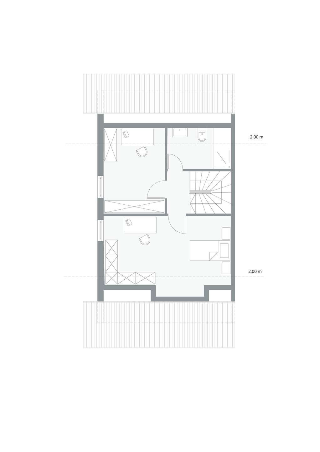 Das voll ausgebaute Dachgeschoss verfügt über ein großzügiges Schlafzimmer und einen weiteren Raum, der sich ideal zum Arbeiten im Home-Office oder als Gästezimmer eignet. Ihren zukünftigen Gästen steht auf dieser Etage ein weiteres Duschbad zur Verfügung.