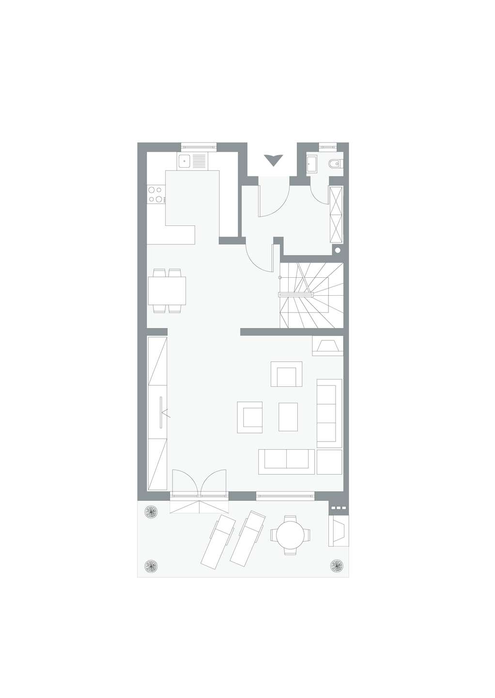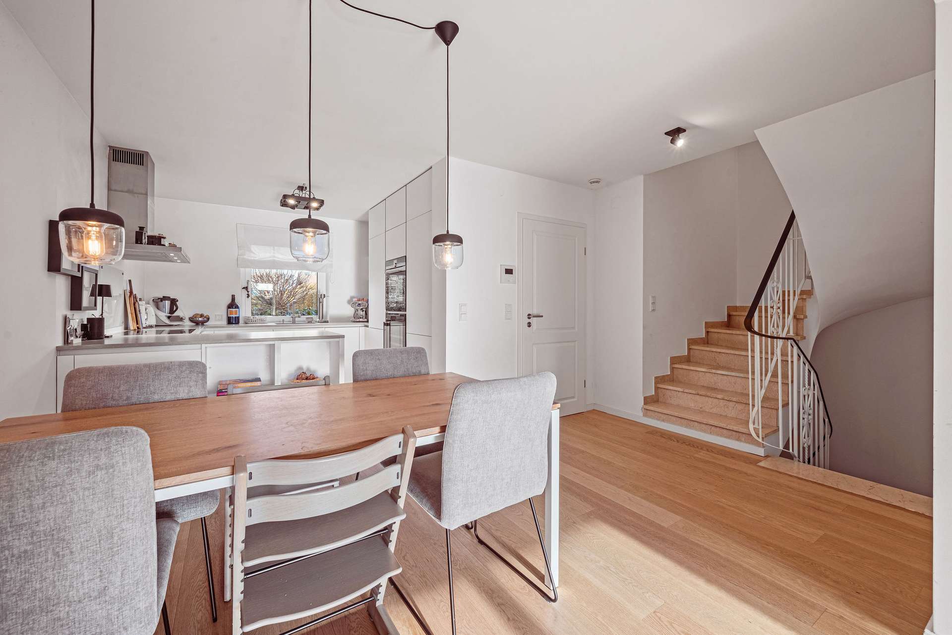- + Offen gestaltetes Erdgeschoss mit Küche, Esszimmer und hellem Wohnbereich