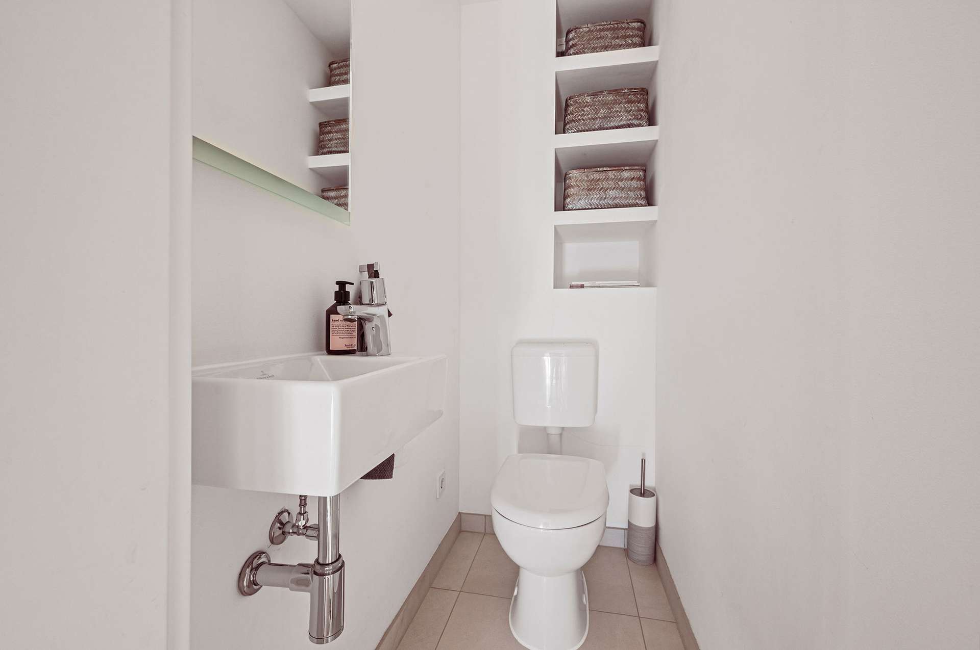 Die Einbauküche mit Markengeräten von Miele und Siemens, der Einbauschrank im Erdgeschoss, Plissees und Spiegel in den Bädern müssen vom Vormieter für insgesamt € 13.500,– abgelöst werden.