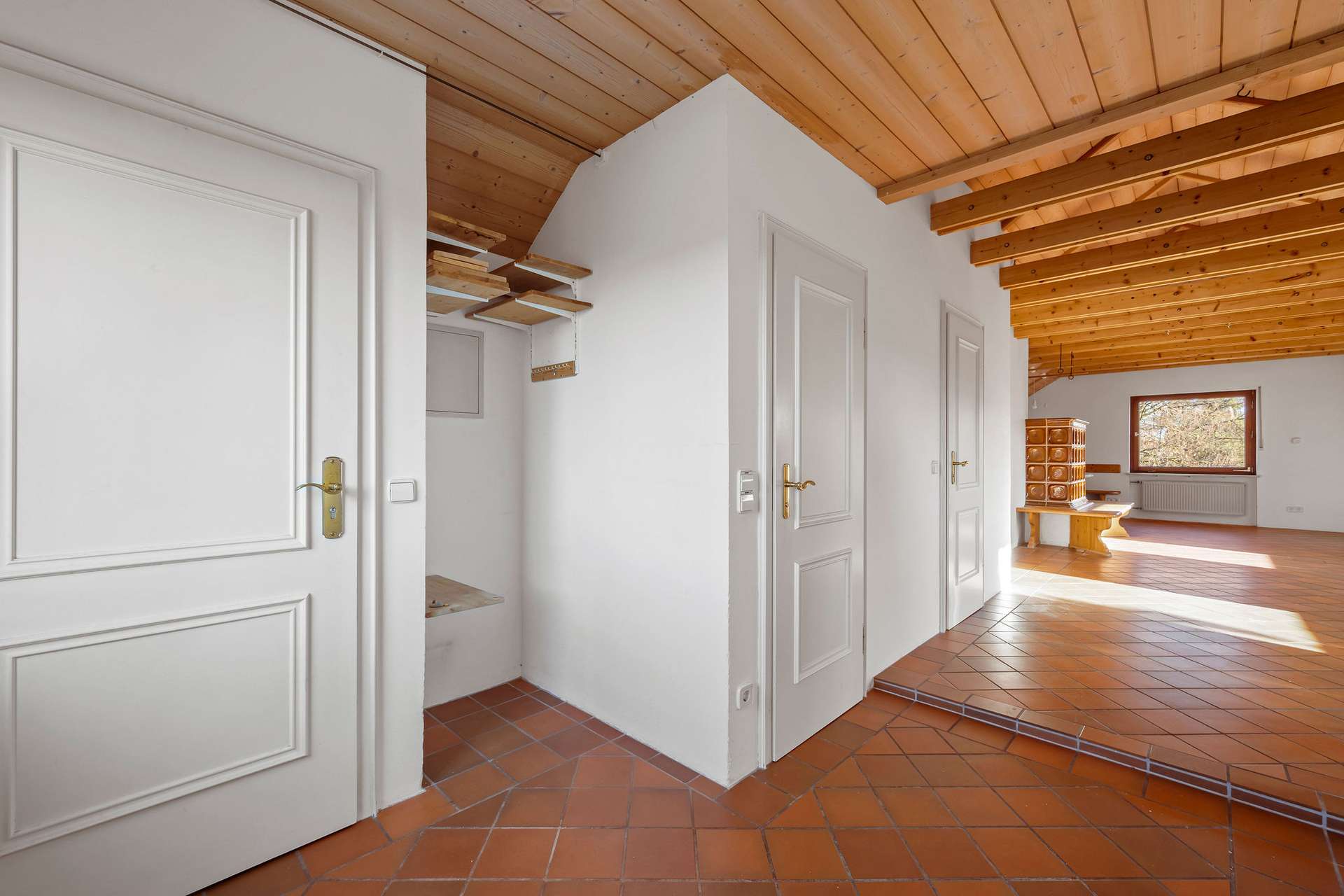 Die Wohnung im Obergeschoss bietet rund 92 m² Wohnfläche, welche sich auf vier Zimmer und einen großzügigen Balkon verteilen, wohingegen die 2-Zimmer-Dachgeschosswohnung über rund 73 m² Wohnfläche verfügt. Sie ist mit einer Fußbodenheizung und einem gemütlichen Kachelofen ausgestattet.