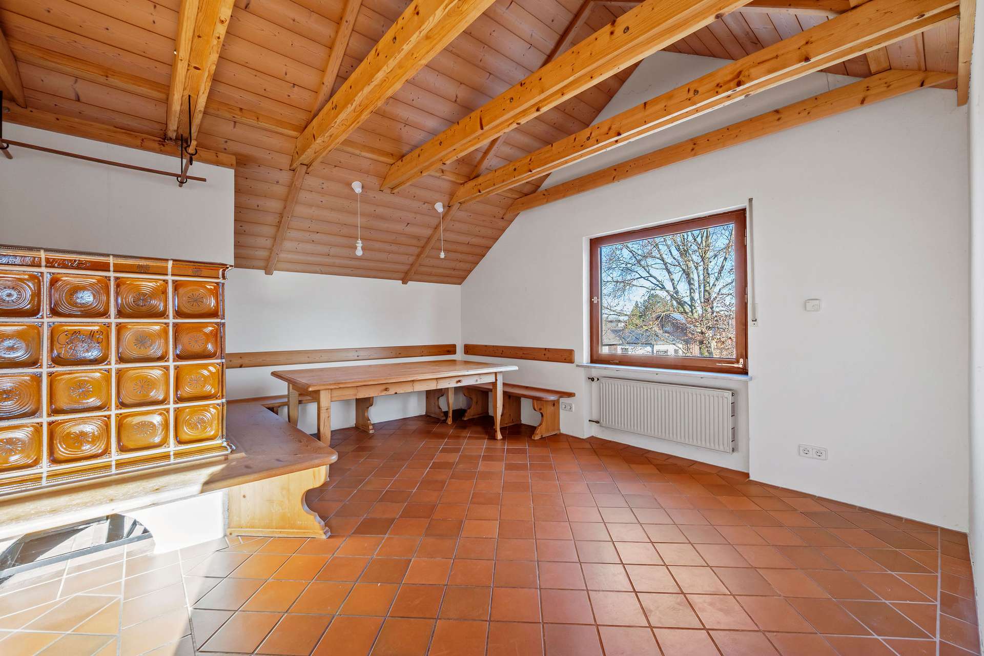 - Einzelwaschbecken und WC), separater Küche, Gäste WC, Kachelofen und