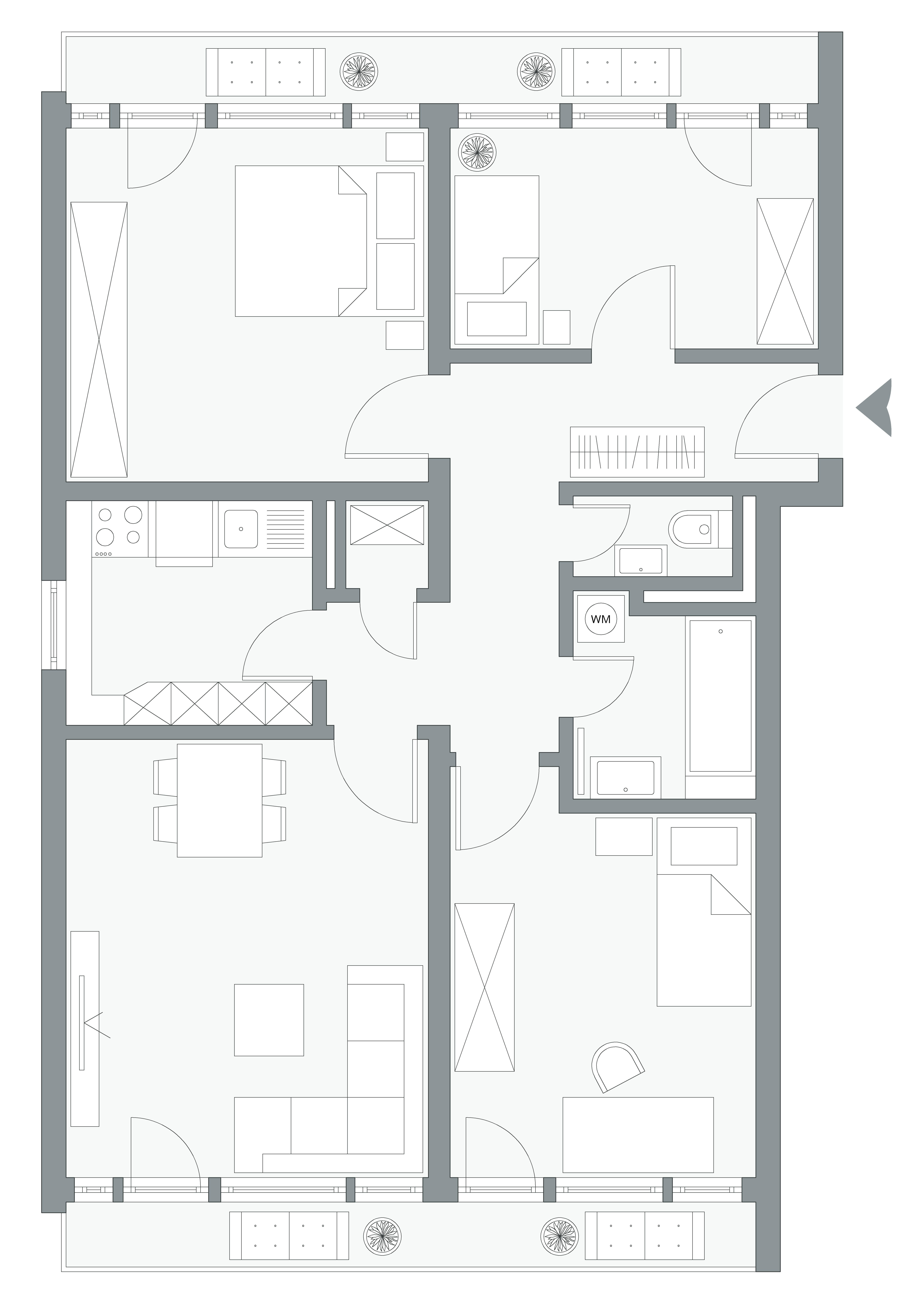 • + Zwei große Balkone (Ost und Westausrichtung)